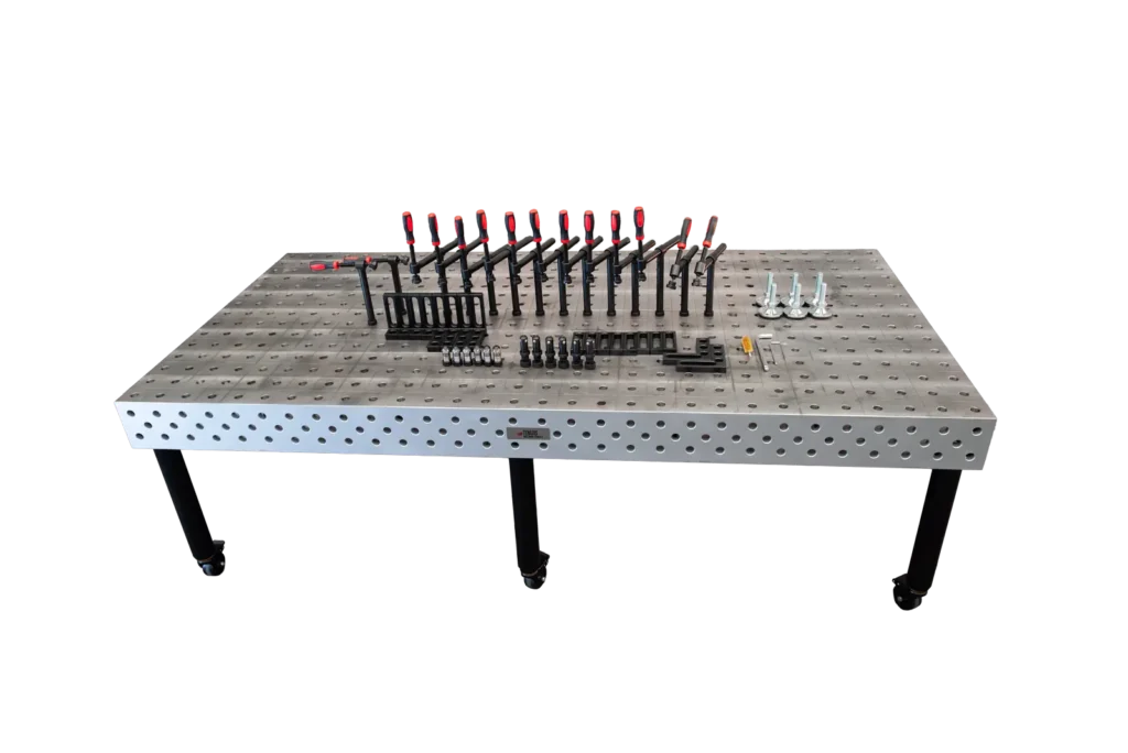 Shops stepping up from small benches to a full-size modular welding table for larger assemblies.