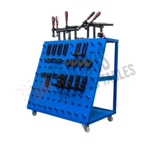 Mobile storage for clamps, pins, and tooling.
