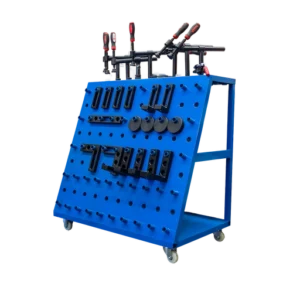 Mobile storage for clamps, pins, and tooling.